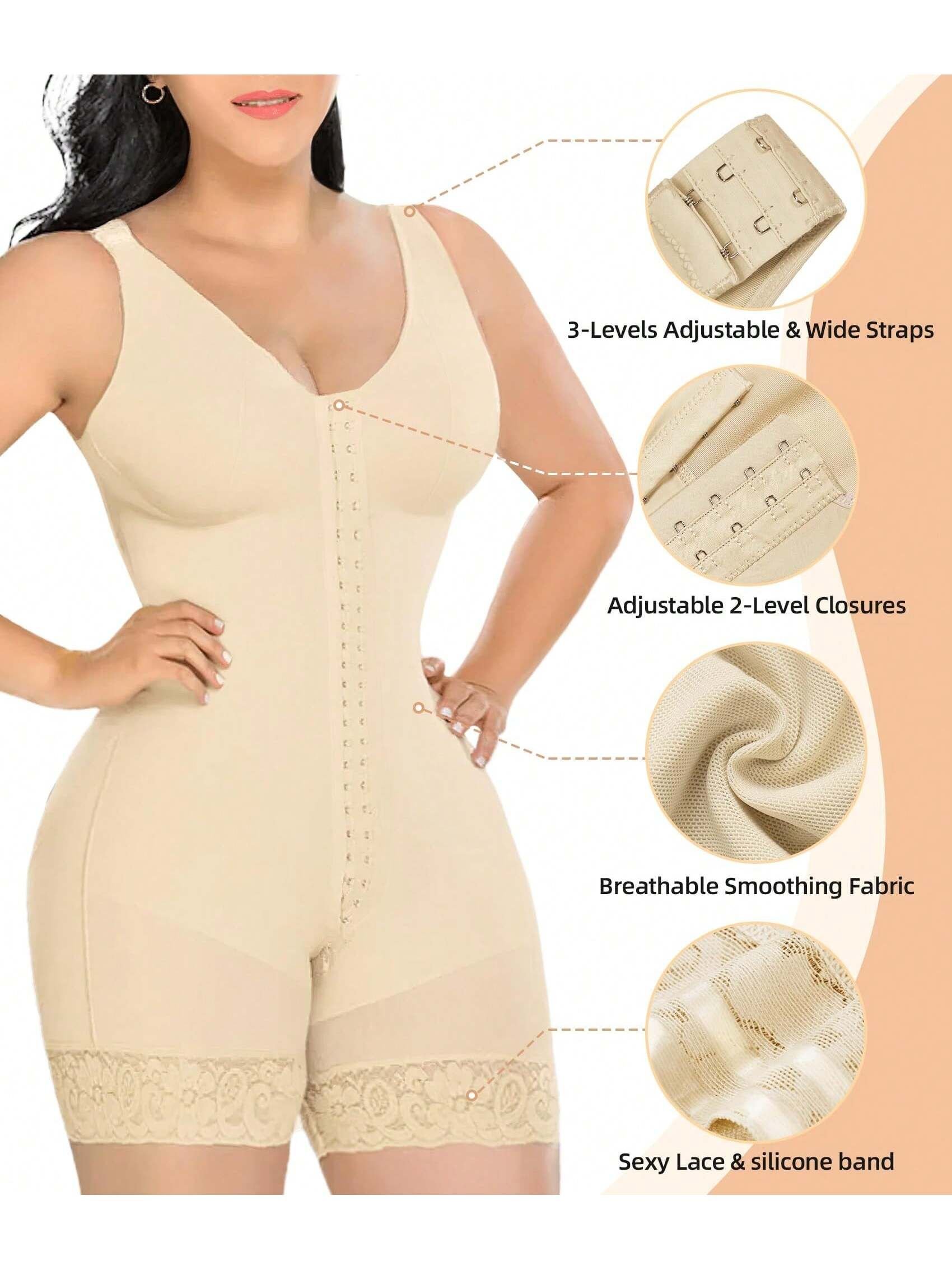 WIDE STRAPS & HOOK-EYE CLOSURE - Extra wide shoulder straps combined with 3 rows of hook-and-eye fasteners allow for free size adjustment, reducing shoulder pressure and ensuring all-day comfort. The faja body shaper's tummy control 2-row hook-and-eye closure adapts to your body shape, eliminating bulges and providing ample control for your tummy and back.